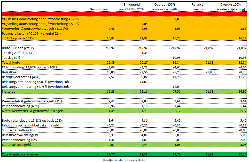 - Bijkomende uren KB213 kosten de werkgever evenveel als gewone uren, maar leveren de werknemer meer dan het dubbel op aan nettoloon.